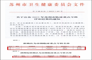 • 苏州九龙医院4个临床科室通过市级临床重点专科评审及复核