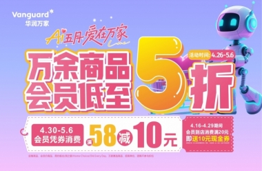 • 华润万家五一大促来袭!万余商品会员低至5折,囤货出游正当时!
